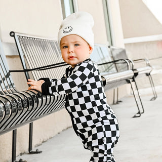 BAMBOO CUFF SMILE BEANIE- WHITE
