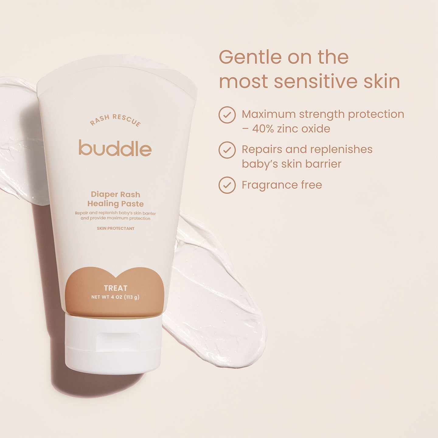 Rash Rescue is here to delicately soothe angry inflamed skin. The powerful healing ointment rapidly repairs Baby’s skin barrier through its creamy blend of ultra-moisturizing lanolin and beeswax to hydrate and create a barrier against wetness and irritation. Ceramides help strengthen and replenish the skin’s natural barrier, while antioxidant-rich dandelion and soothing honey calm inflammation and support healing. With 40% zinc oxide for maximum protection, Rash Rescue is perfect for even the most sensitive skin keeping Baby comfortable, dry, and happy.