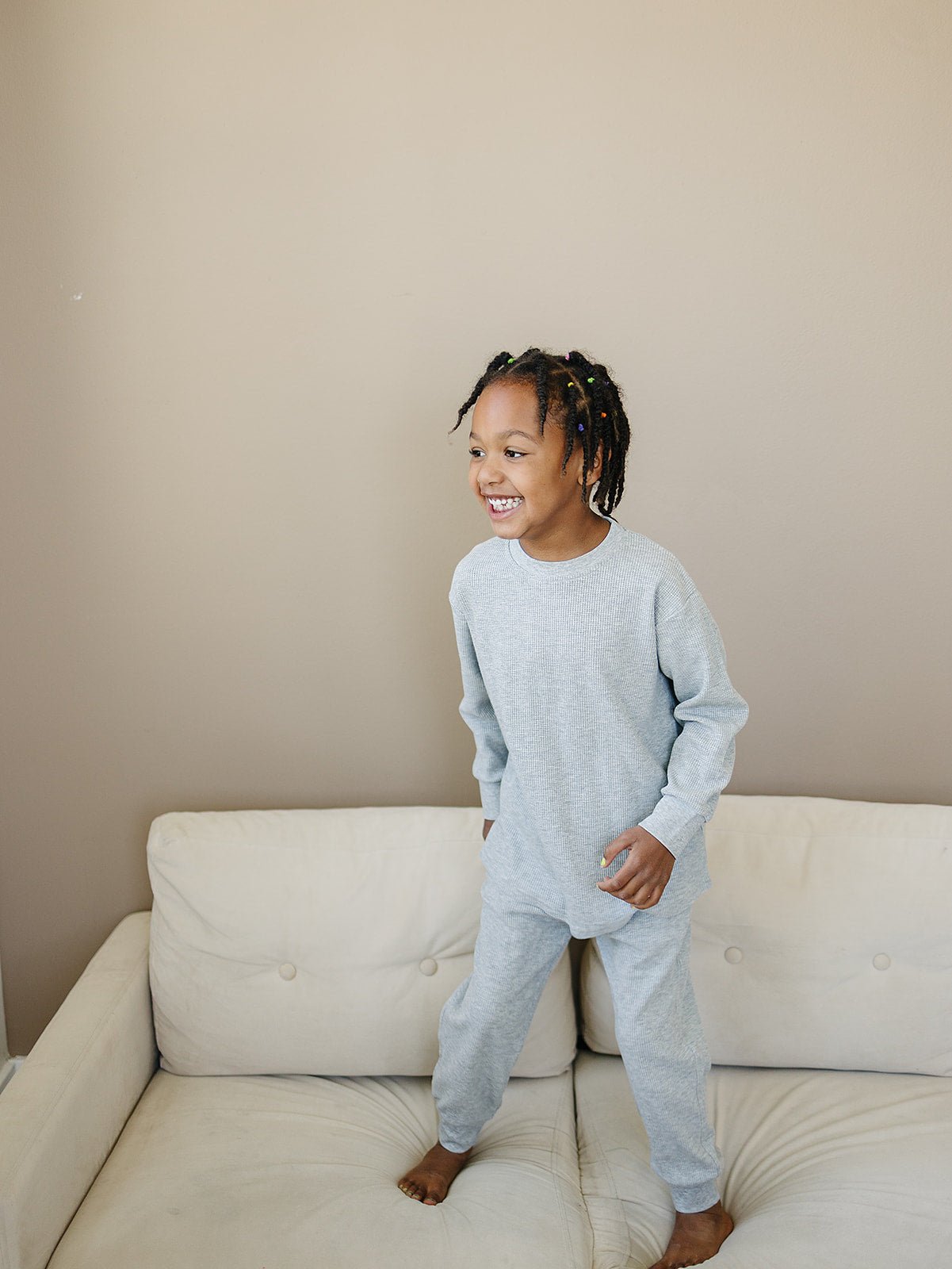 Wrap your little one in the ultra-soft comfort of the Dawson Set, crafted from cozy waffle fabric they'll adore. Available in three colors, this set features an elastic waistband and a functional drawstring for the perfect fit every time. Ideal for bedtime, playdates, or any adventure in between, it’s the go-to outfit for endless comfort and playful days.