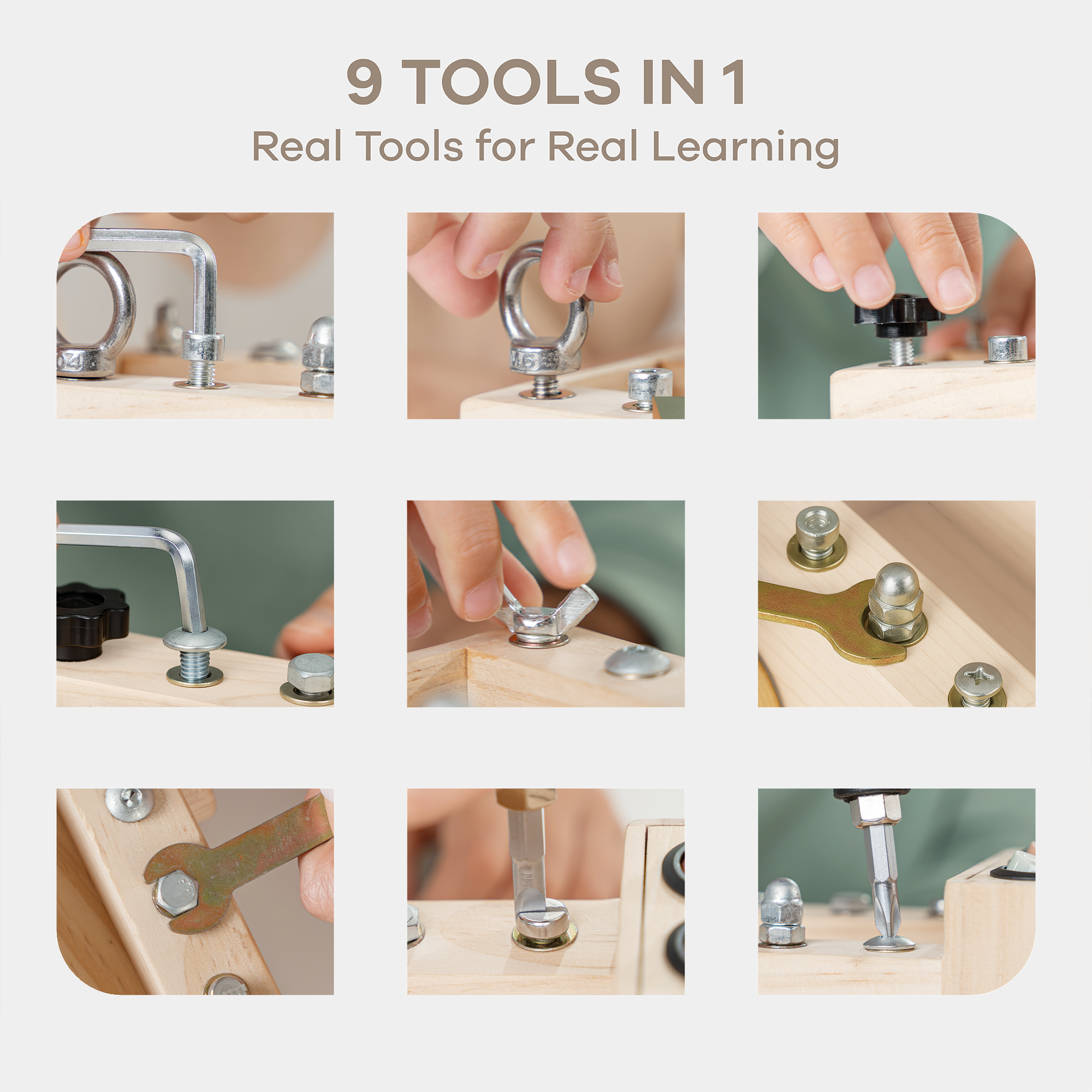 • Durable and Safe Materials: This kids busy board is made from sturdy pine wood and coated with non-toxic, water-based paint. Comfy Cubs toddler toys are crafted to meet the highest safety standards for children’s play.