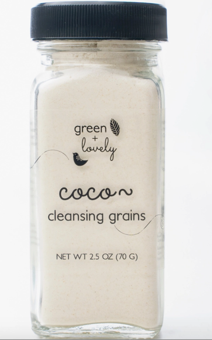 Coco- Cleansing Grains is an ultra fine powder and is used to wash your face, without skin stripping soap and harsh irritants. Our formula is simply made up of skin-loving ingredients: Brown Rice Powder (gluten free), Coconut Milk Powder (hydration and softening), Honey Powder (to soften).