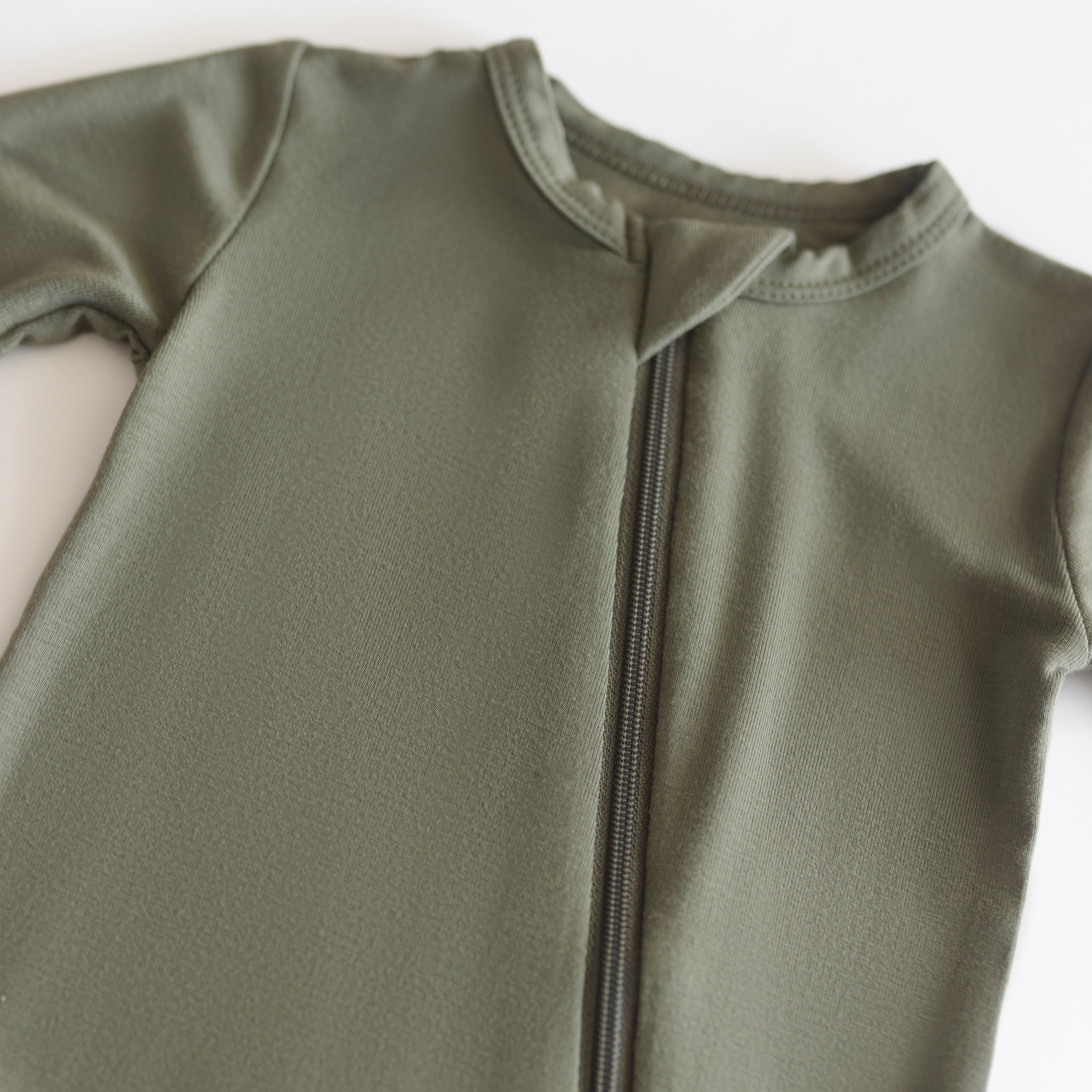 Wrap your little one in ultimate comfort with our luxuriously soft footie onesie, made from a premium rayon/spandex blend. Perfect for cozy nights and dreamy mornings. Available in earthy neutral tones.