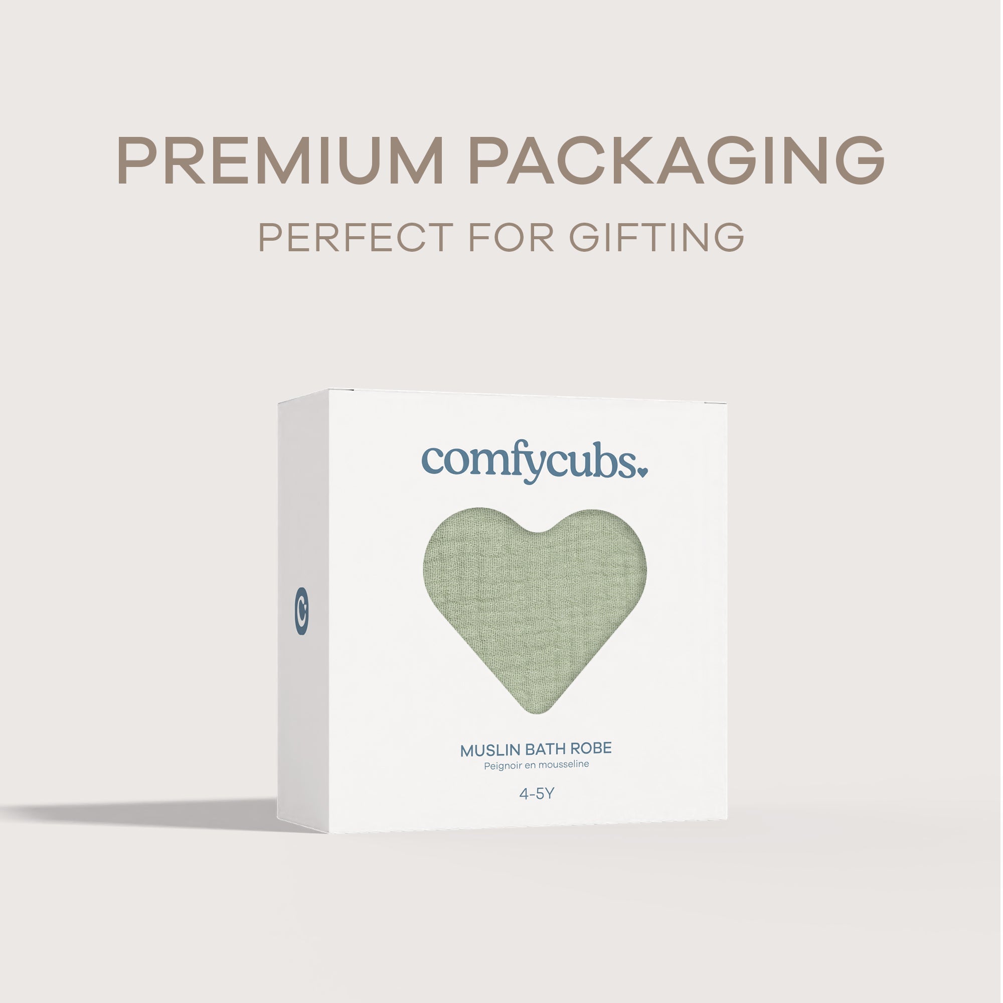 Gentle Comfort: Made with 100% cotton in a 4-layer muslin design, the Comfy Cubs cotton robe offers a calming feel, making it ideal for children to relax and dry off after bath time.