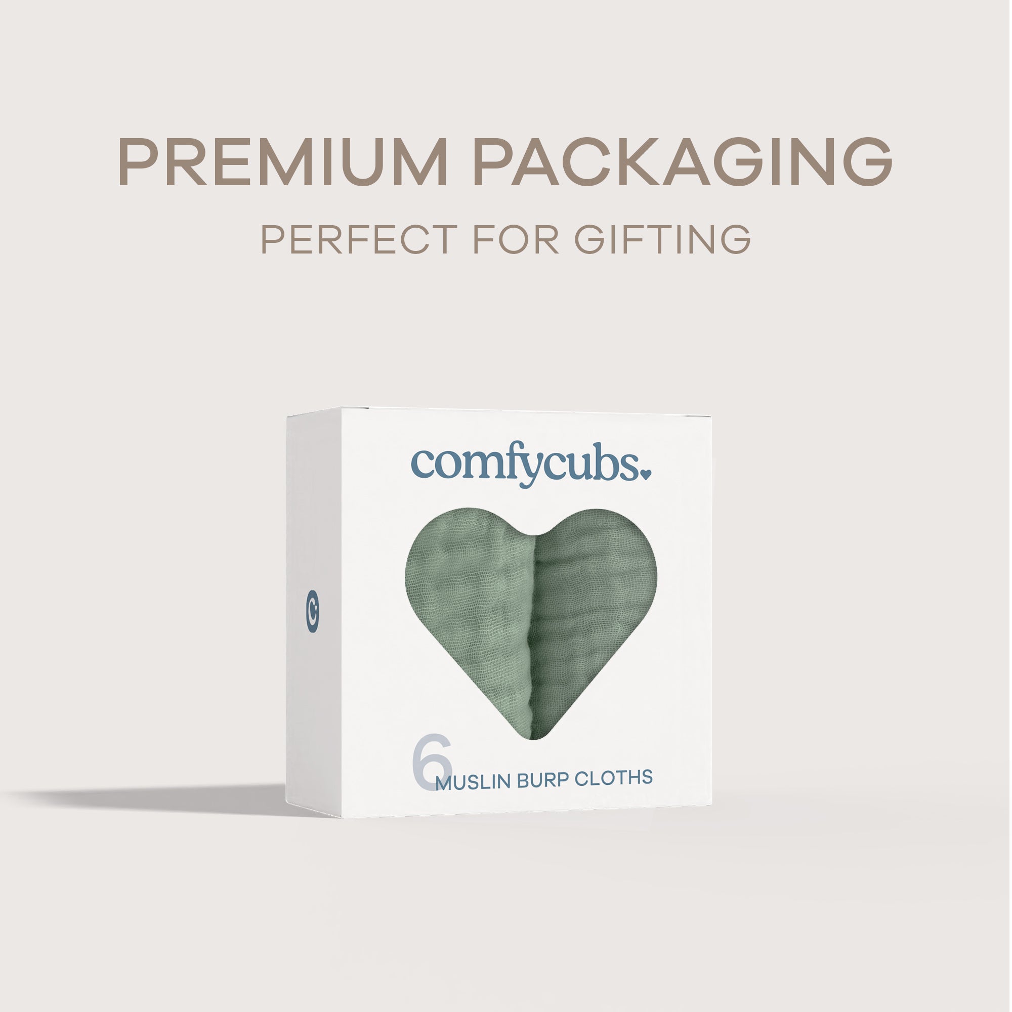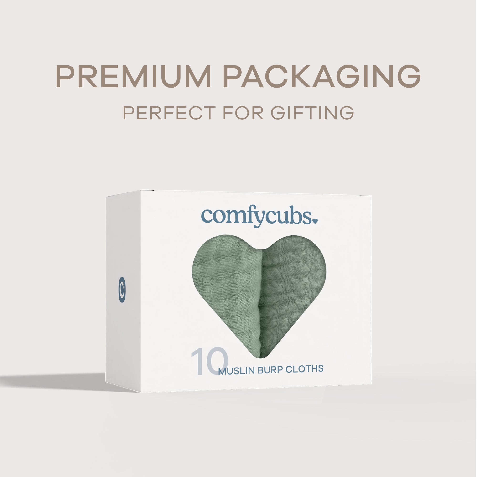 • Beautiful Gift Packaging: Our Comfy Cubs muslin burp cloths come in stunning gift packaging, making them super giftable and the perfect newborn or baby shower gift for new parents. There's no need to gift wrap, just shop and gift or add them to the baby registry. They are perfect for both girls and boys.