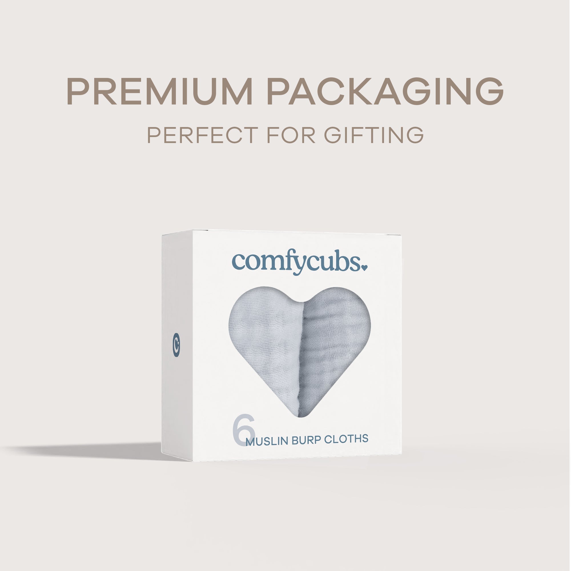 • Beautiful Gift Packaging: Our Comfy Cubs muslin burp cloths come in stunning gift packaging, making them super giftable and the perfect newborn or baby shower gift for new parents. There's no need to gift wrap, just shop and gift or add them to the baby registry. They are perfect for both girls and boys.