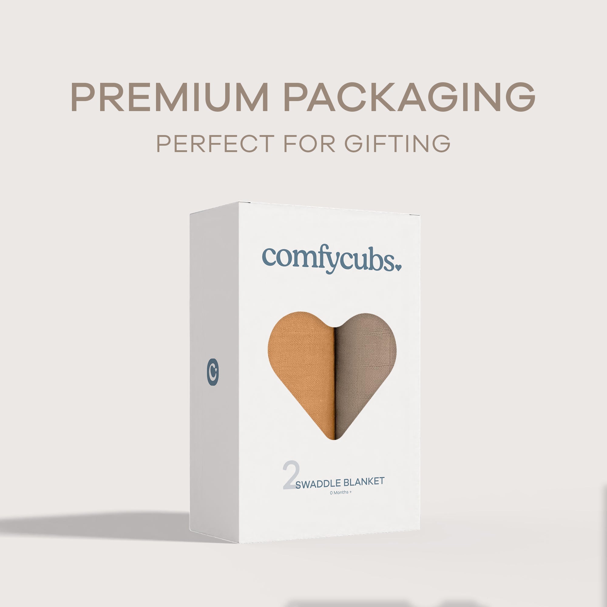 Muslin Swaddle Blanket, 2 Pack by Comfy Cubs - Cedar & Caramel