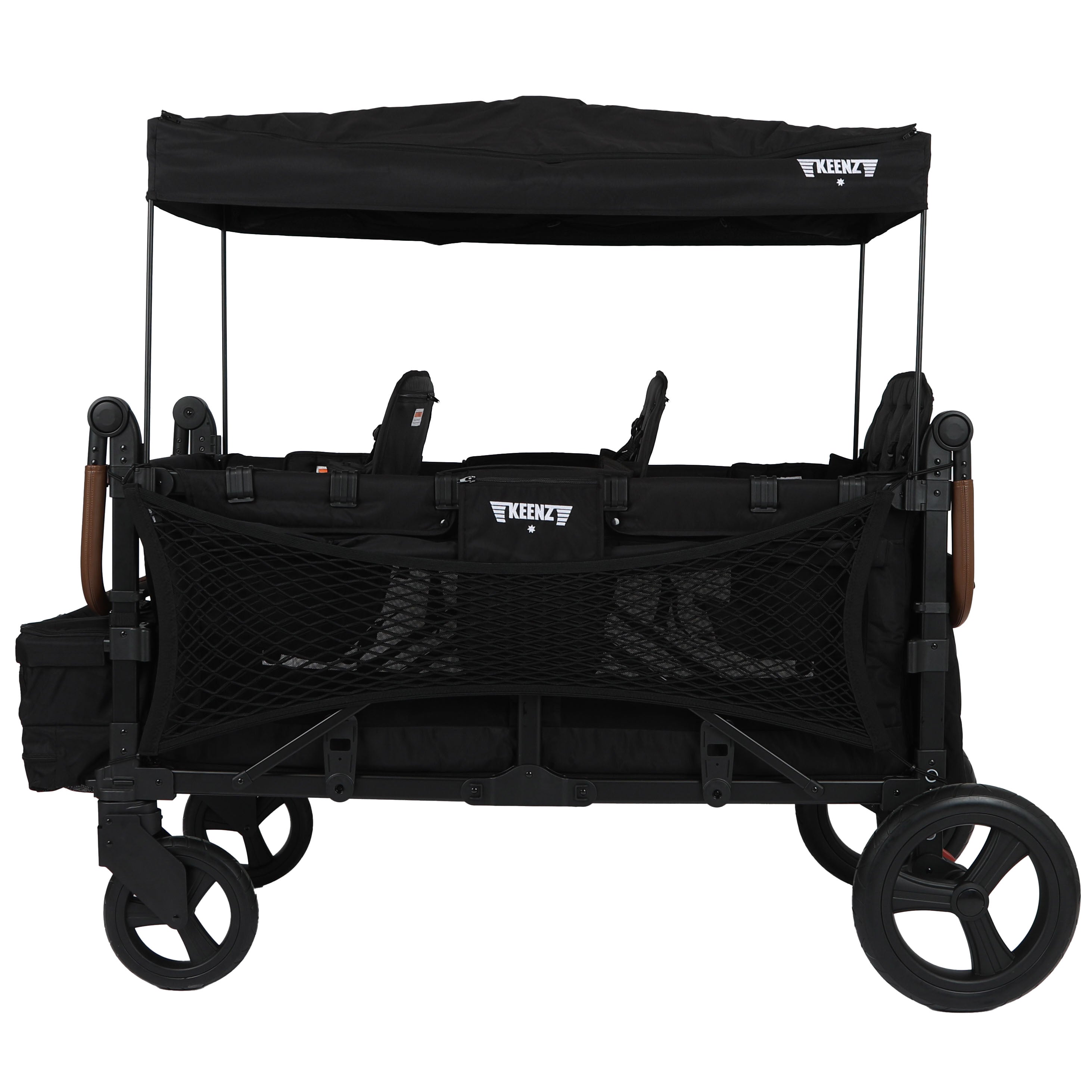 The most spacious and comfortable luxury stroller wagon in the Keenz lineup is here—fully loaded with all-terrain rubber wheels, a built-in activity tray, and ample storage space, thoughtfully engineered for larger families, daycares, and group caregivers.