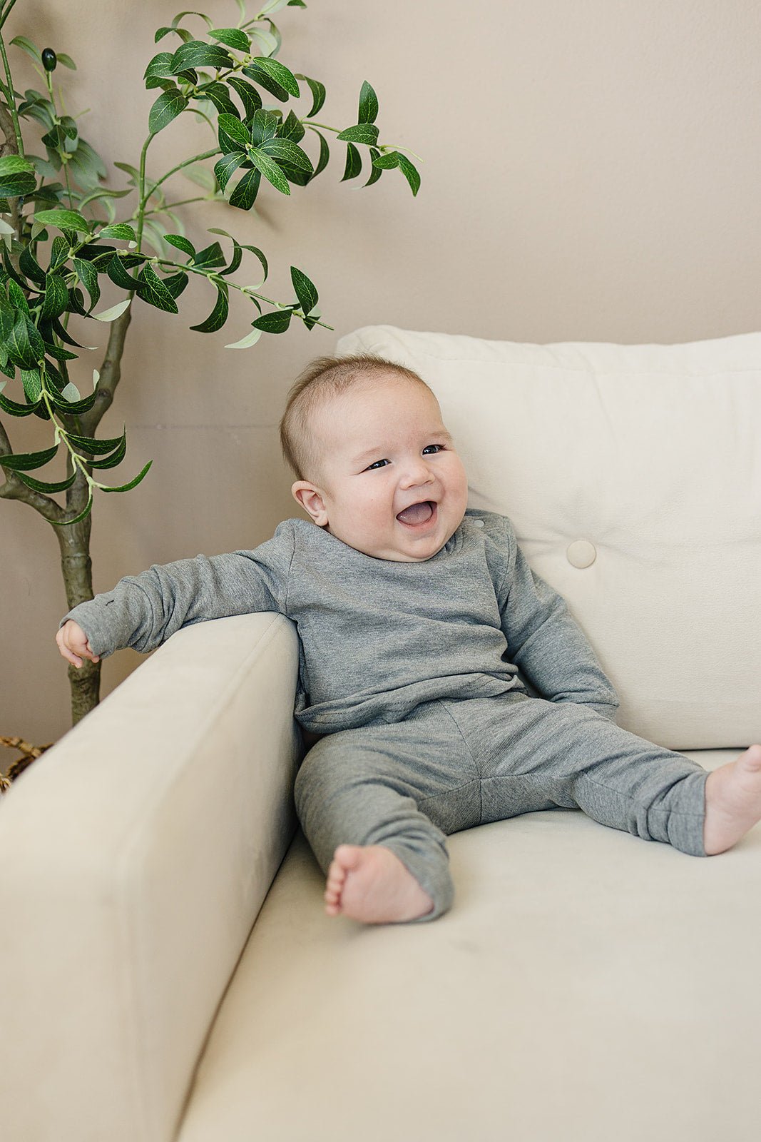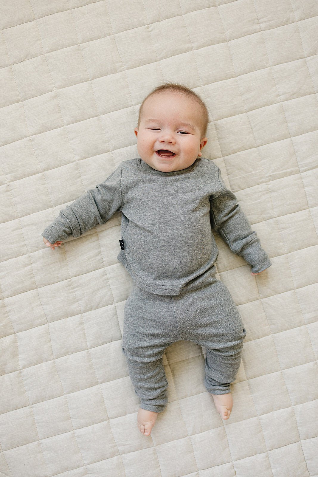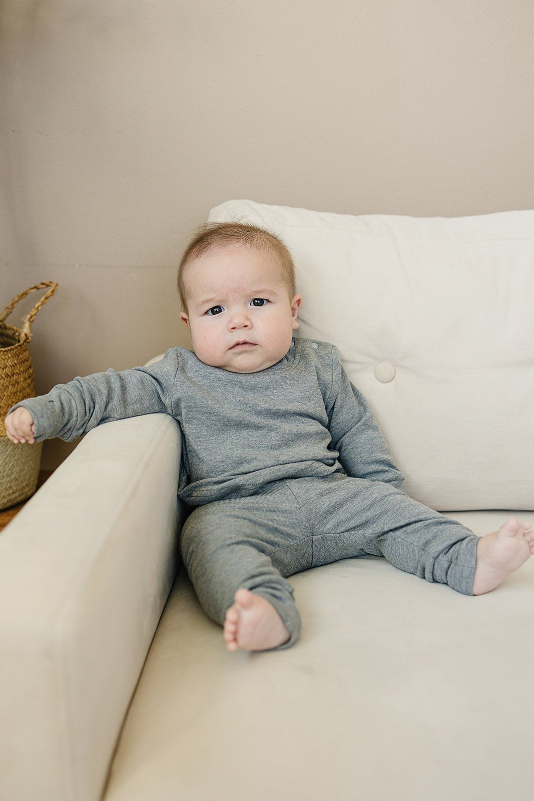 Wrap your little one in the Sterling Set, crafted from super soft and stretchy fabric that moves with them for ultimate comfort. Featuring convenient shoulder snaps, dressing and undressing is a breeze. This cozy set is so comfy, you’ll want to cuddle them all day long!