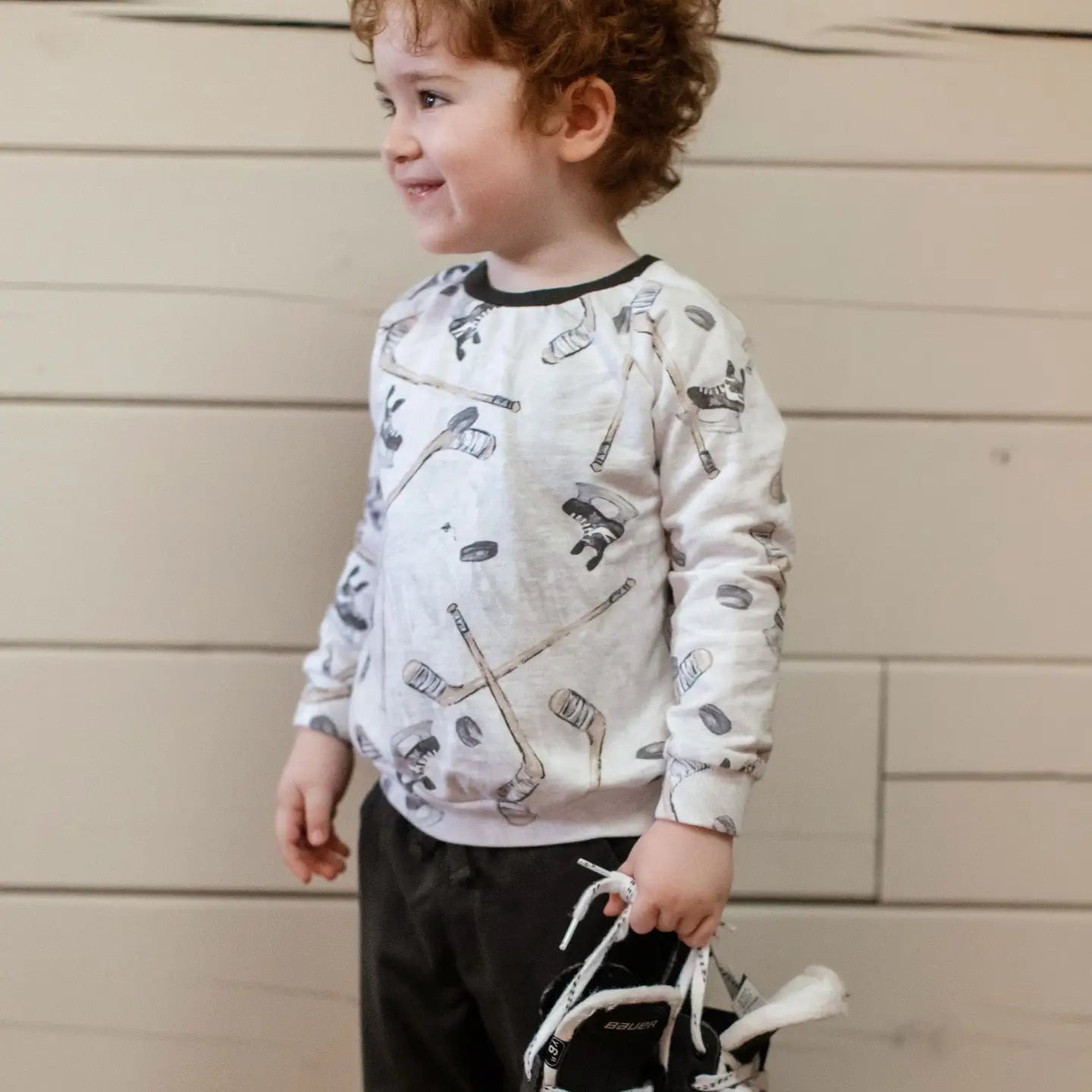 Your little bee will be casual and cool in our handpainted hockey sweatshirt and jogger set! * Sweatshirt and jogger set * 100% organic cotton * French terry sweatshirt and pant * Raglan sweatshirt * Functional cargo pocket and functional drawstring on pant * Made in India