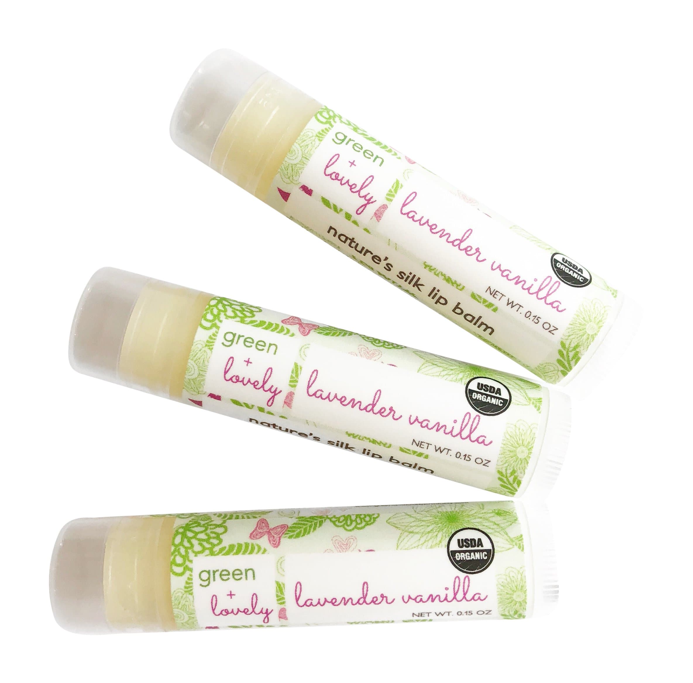 * Organic Nature's Silk Lip Balm comes in a clear 0.15 oz tube.