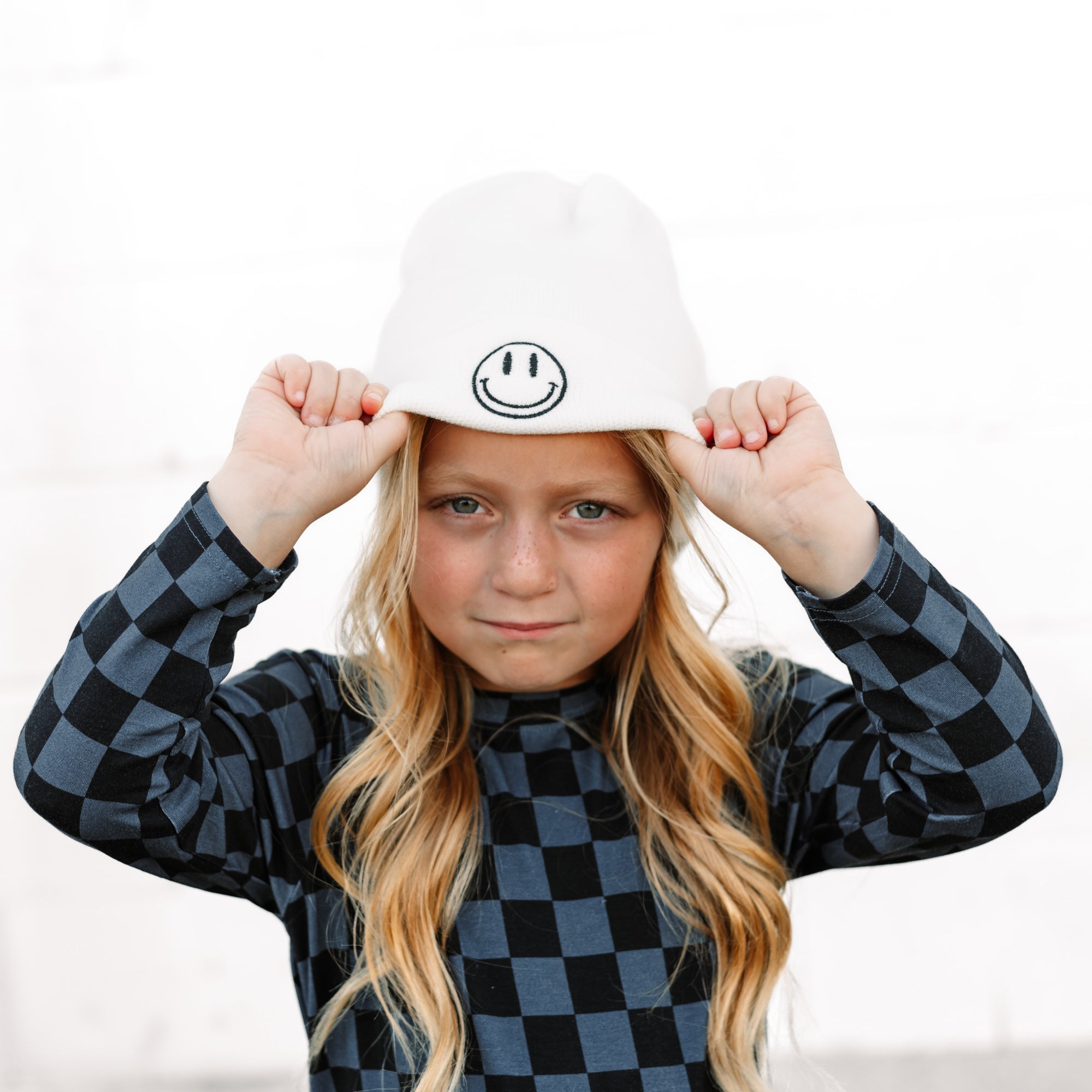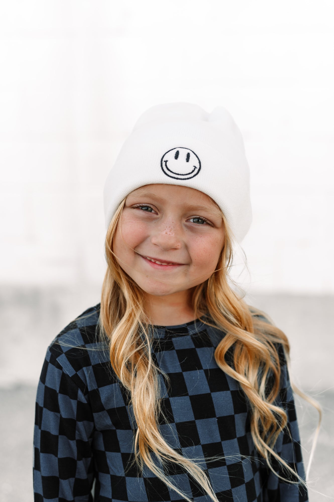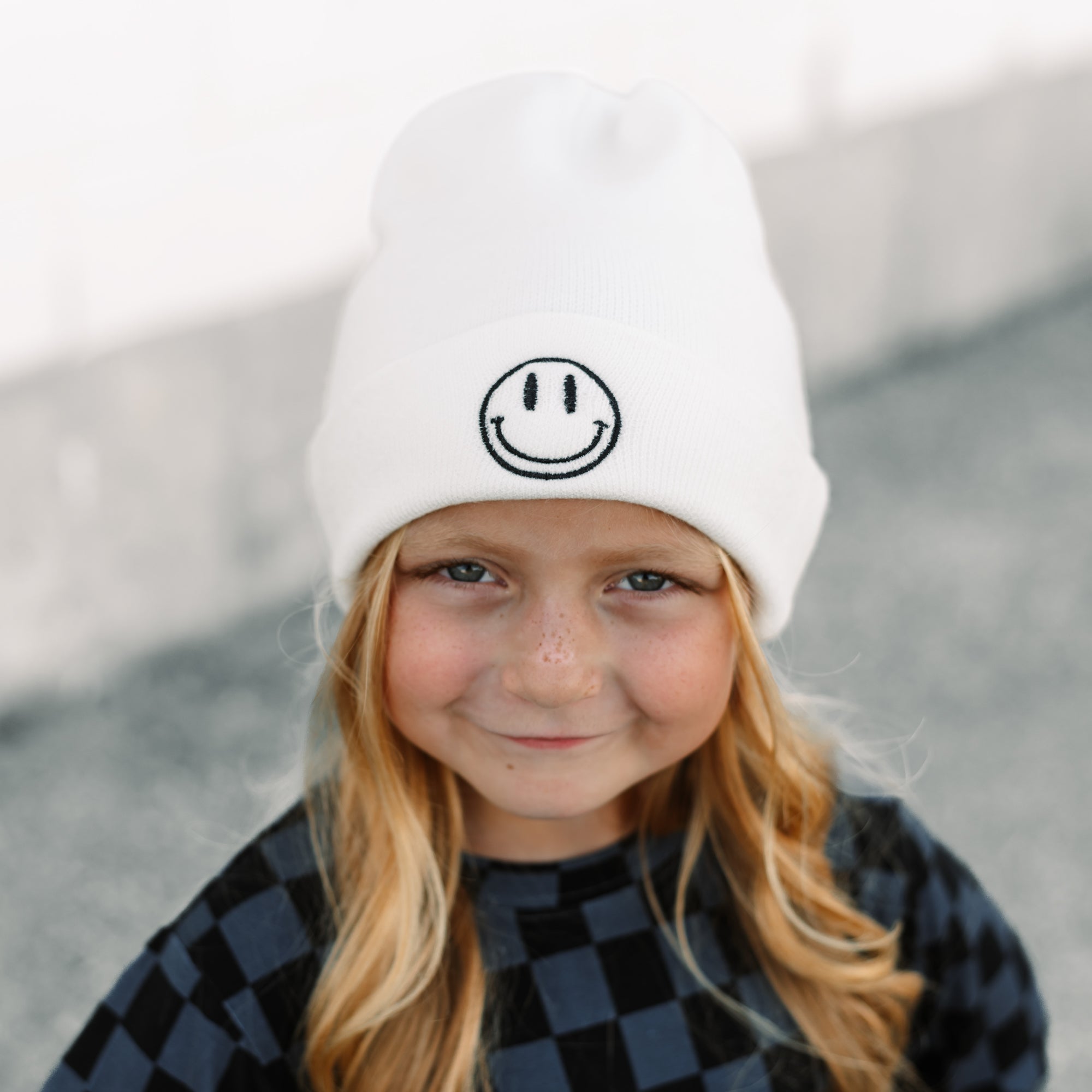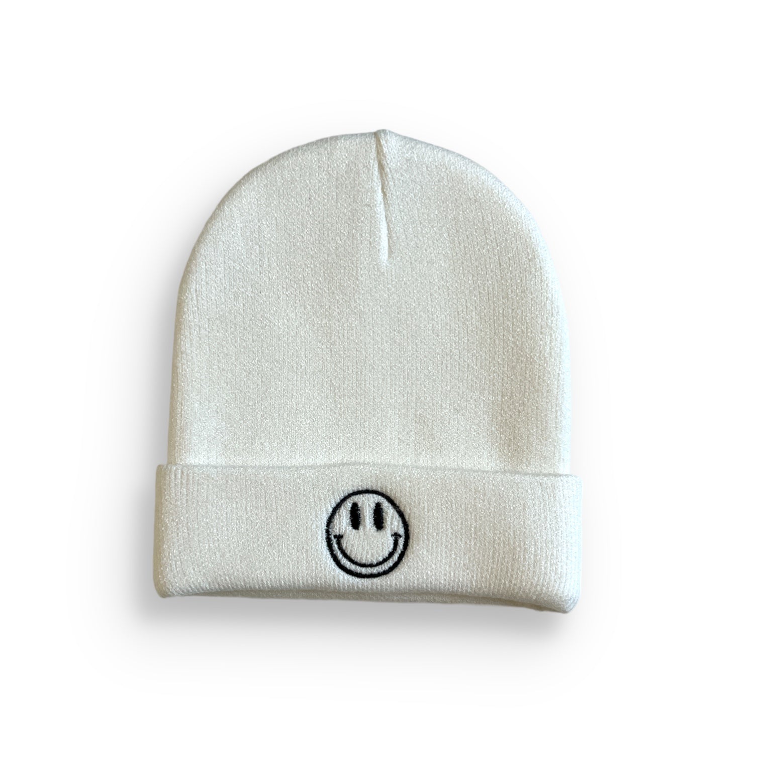 BAMBOO CUFF SMILE BEANIE- WHITE