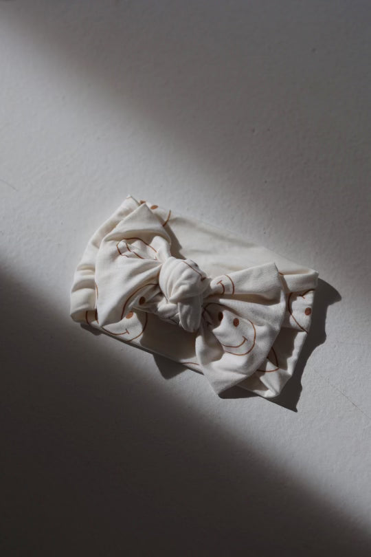 Made from soft bamboo material, this adjustable head wrap features a cute bow for added style. Perfect for babies and toddlers!