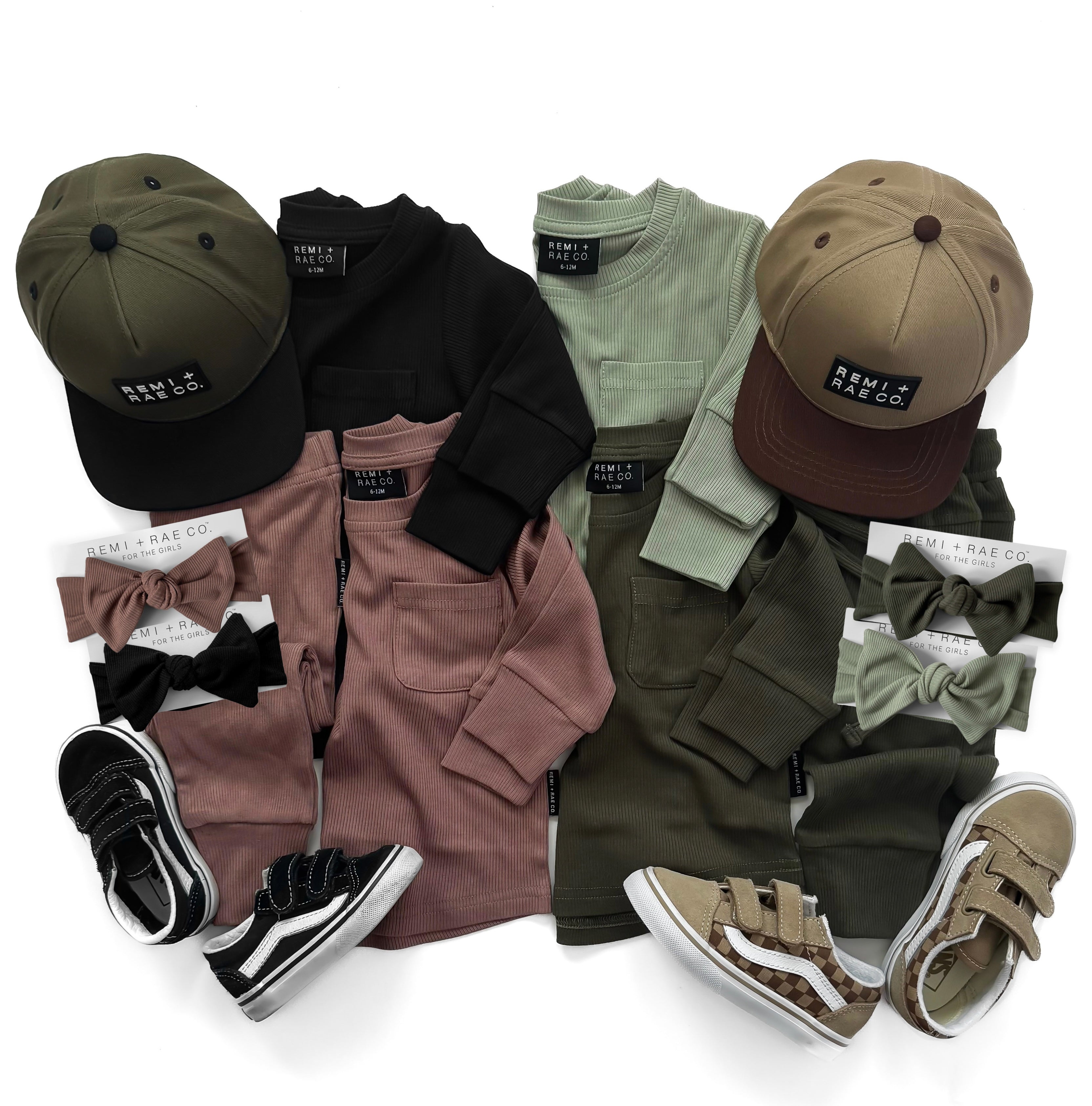 The Spring Breeze Collection, a Collection filled with the perfect transitional Winter to Spring colors. Our Bamboo Ribbed Long Sleeve Pocket Tees are made of our scrumptiously soft bamboo ribbed material; making them the best option for those with sensitive/eczema prone skin, or for those who love the extra comfort. Pair our Long Sleeves with the matching Leggings + Bow, or mix + match with our various options for an effortless look.