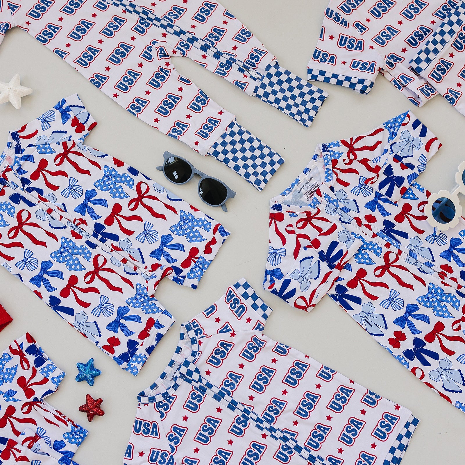 Get your little patriot ready to dream big and reach for the stars in the Bamboo Zip Romper | USA!