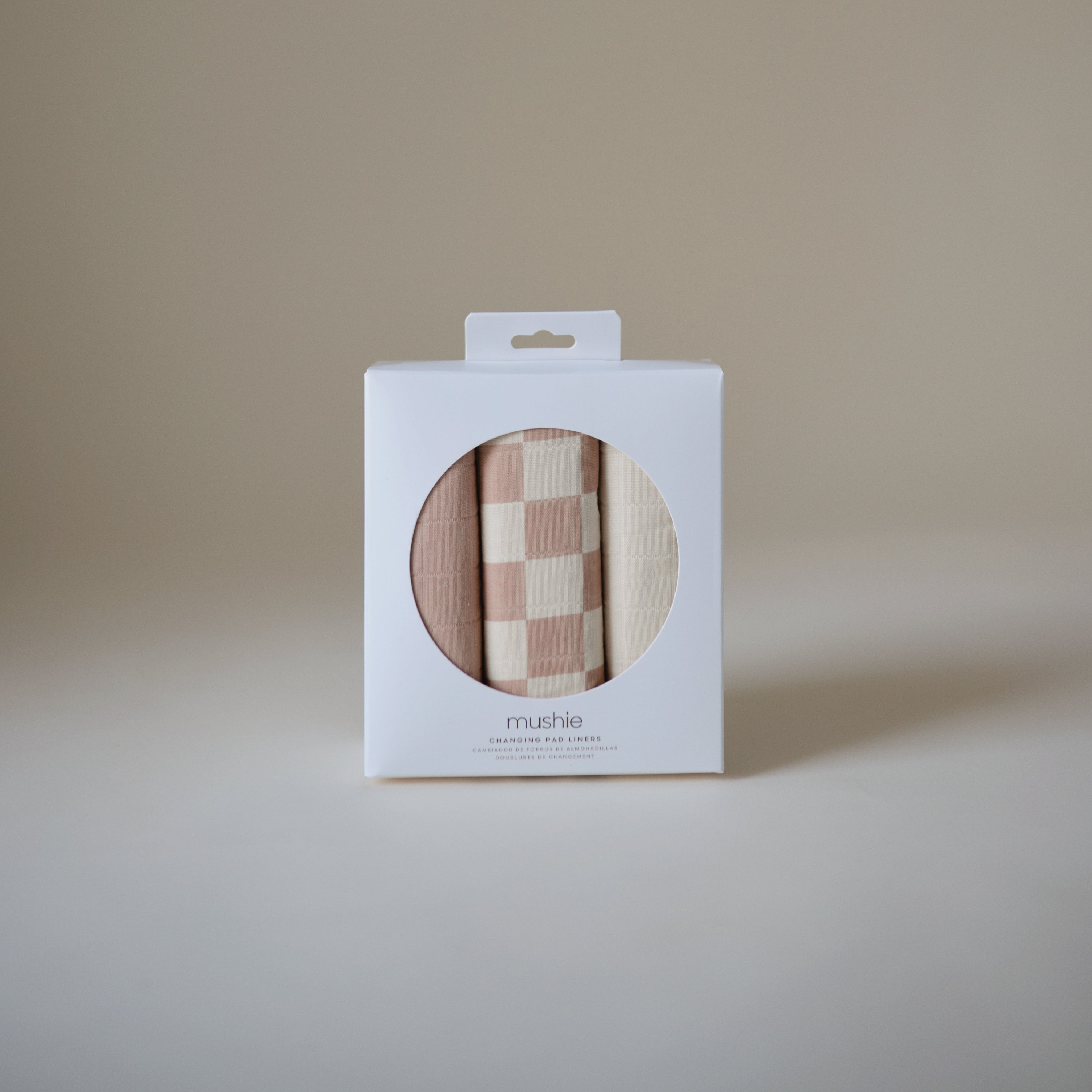 Help keep your baby’s space clean and add a layer of calming comfort to diaper changes with Mushie muslin changing pad liners. Crafted with 100% organic cotton on the top and soft terry on the bottom. A water repellent layer helps prevent messes and prolongs time in between changing pad washes. Designed with busy parents in mind, our liners are machine washable, protect most standard size changing pads and easily fit into a diaper bag for on-the-go changes.