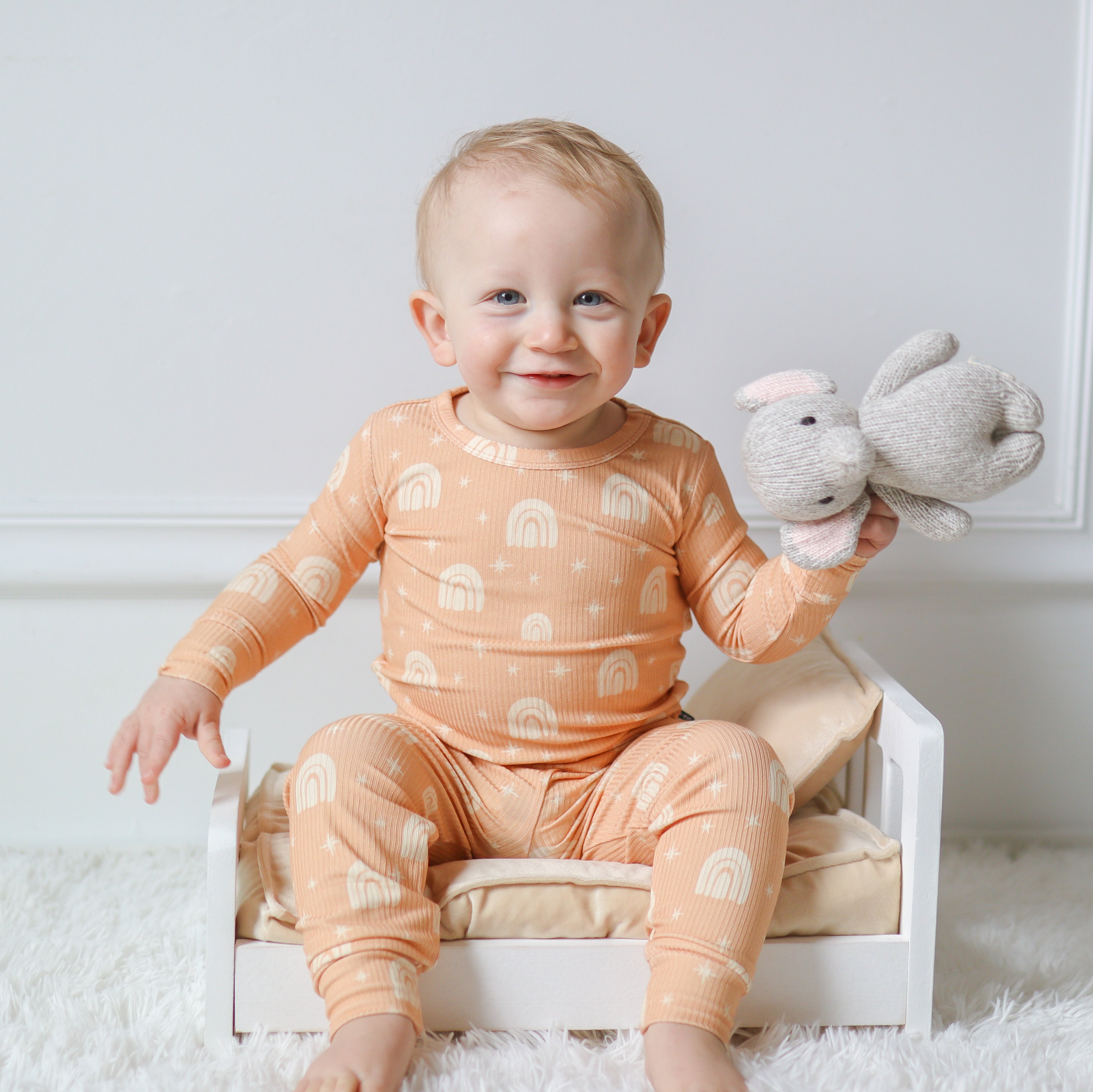 Introducing our long-sleeve two-piece set, made from breathable, silky smooth 95% Bamboo Viscose and 5% Spandex. This set is designed with your child's comfort and safety in mind, ensuring a snug fit that allows for maximum mobility and growth.