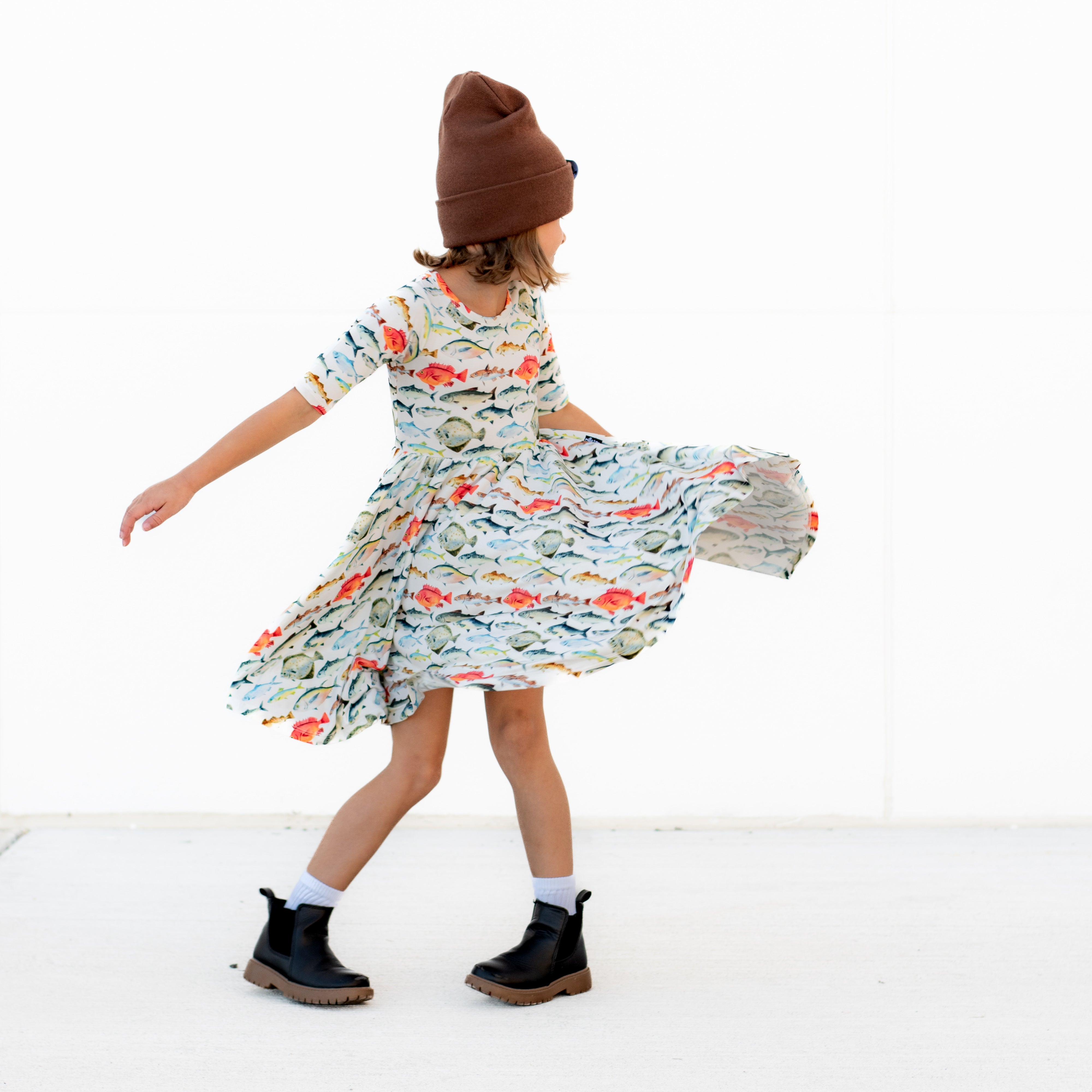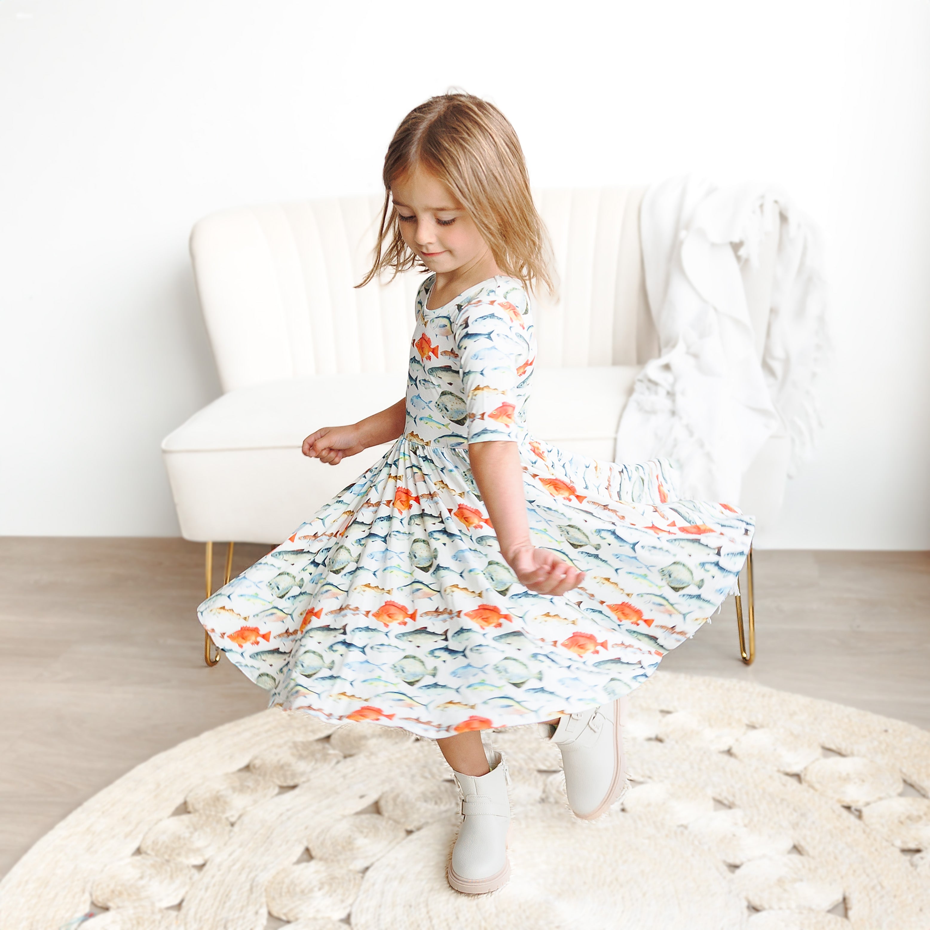 Our amazing Twirl Dress will be your one stop shop for any babe who loves to be comfy and twirl, made with our OEKO-tex certified Organic Bamboo Viscose.