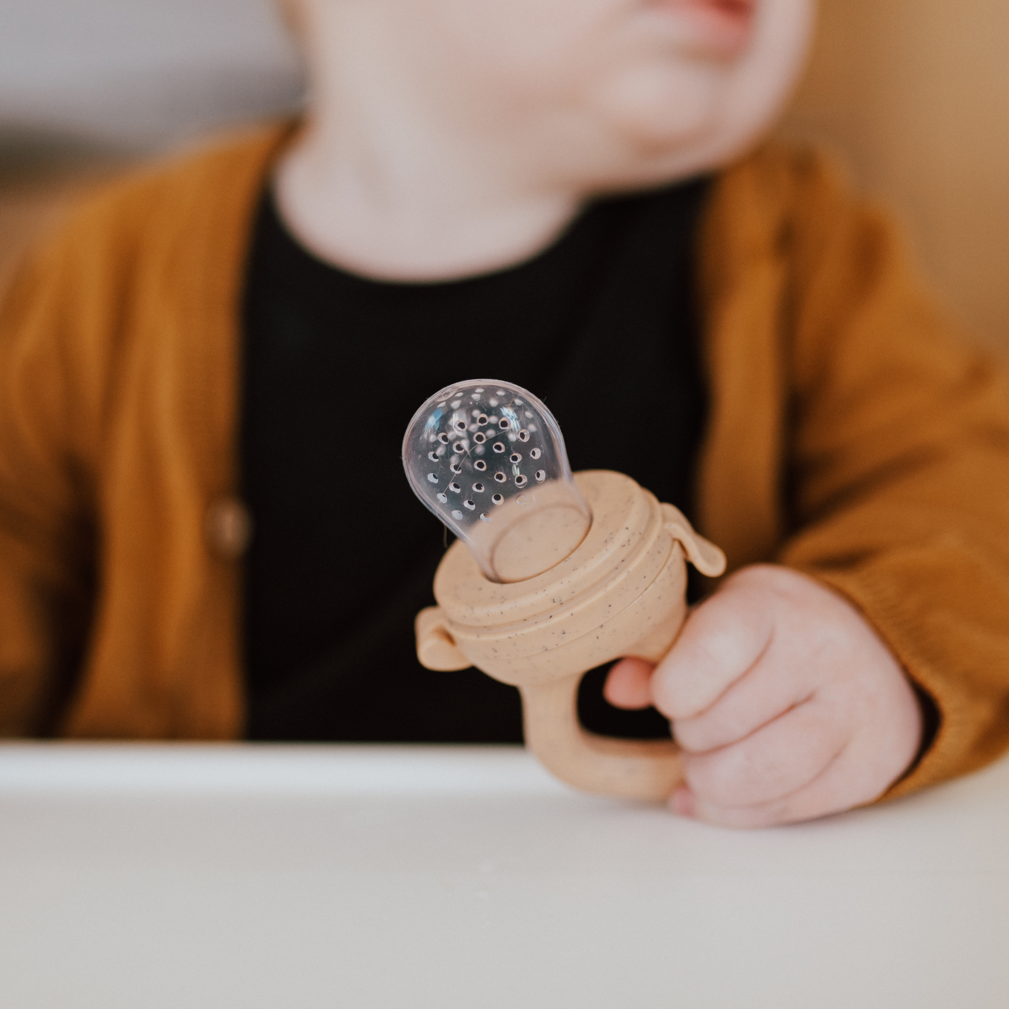 Designed with your little one's safety in mind, the Mod Feeder ensures that food is introduced at the appropriate age. Made from eco-friendly silicone and recycled plastic, this teether features small holes in the silicone that allow only small bits of food to pass through. This prevents your little one from biting off more than they can chew and eliminates any potential choking hazards.