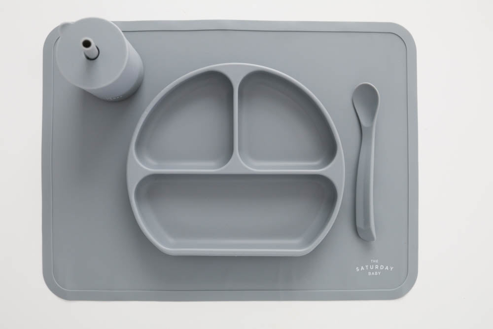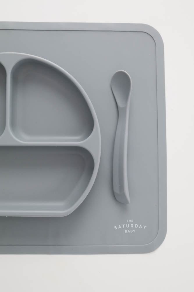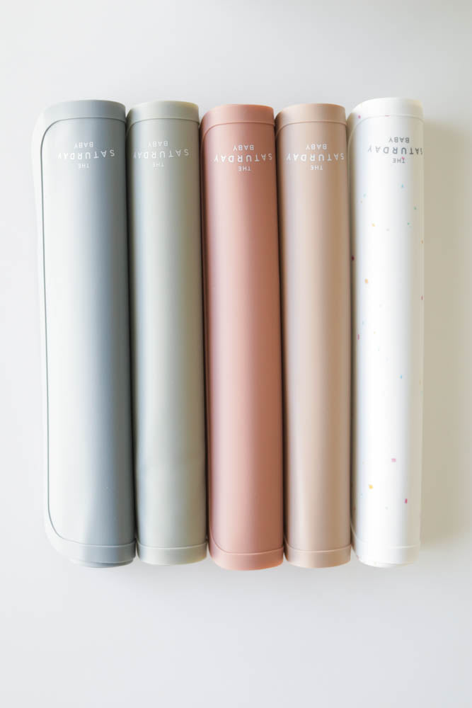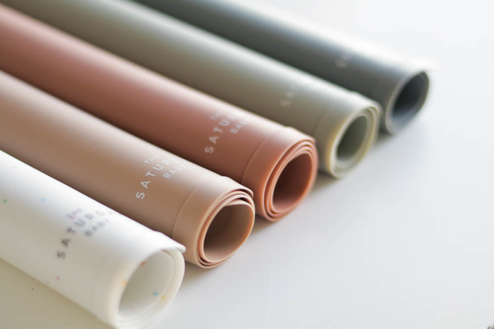 Our Saturday Baby placemats are made out of 100% food grade silicone material. Put our placemats in the dishwasher at home or conveniently wipe them off on the go. The placemat is perfect for meal time, snacks, playtime, or crafts. The placemat features a non slip back to help your placemat stay put. The rim around the edge keeps any spills at bay. Of course you can always feel safe knowing that all of our products are FDA approved, BPA, PVC, and BPS free.