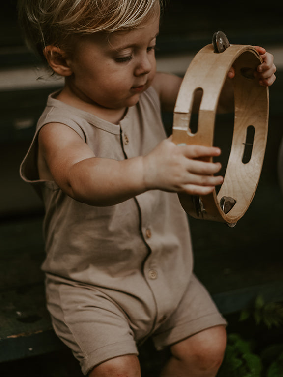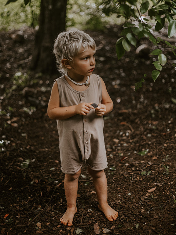 Adorned with wooden buttons down the front, this dreamy one-piece combines a relaxed fit with our luxuriously soft organic cotton for the most delightful of days. Includes hidden crotch snaps for sizes NB-24 months.