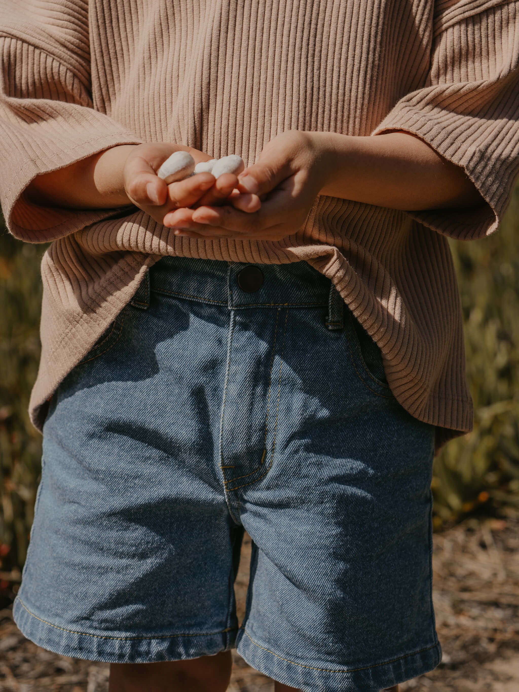 The most perfect denim shorts that we only wish were in our size! Made in soft, lightweight denim and featuring an elasticated waist and a relaxed fit, these are comfortable and easy to wear all season long. Roll the cuffs up or down for a charming summer look. This simple wardrobe staple goes well with everything. Pair them with our Muslin Henley or Oversized Terry Top.