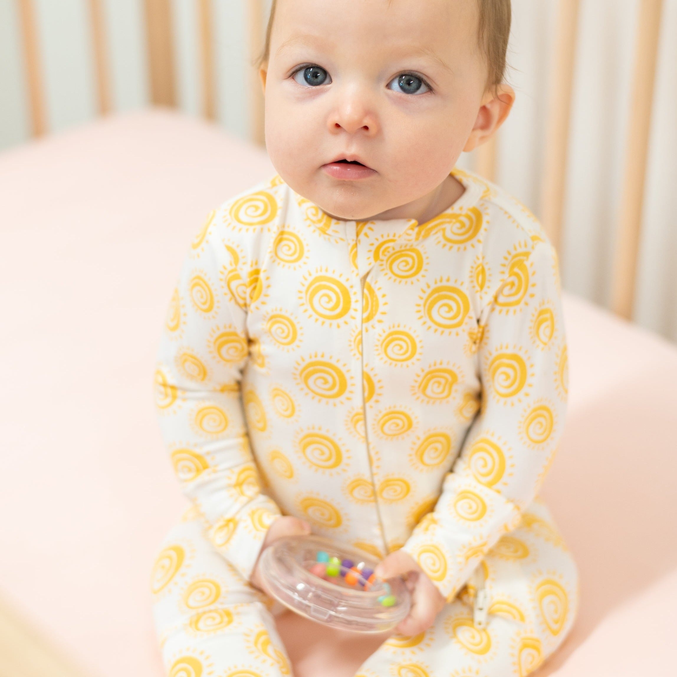 Ask and you shall receive. This yummy footie is equipped with a smooth 2-way zipper, silicone grips on the foot pads and fold-over handcuffs. Plus our silky-soft fabric hugs in all the right places to show off those baby curves.